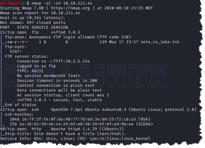 2. Scan the victim machine using nmap. nmap -sC -sV 10.10.213.44
