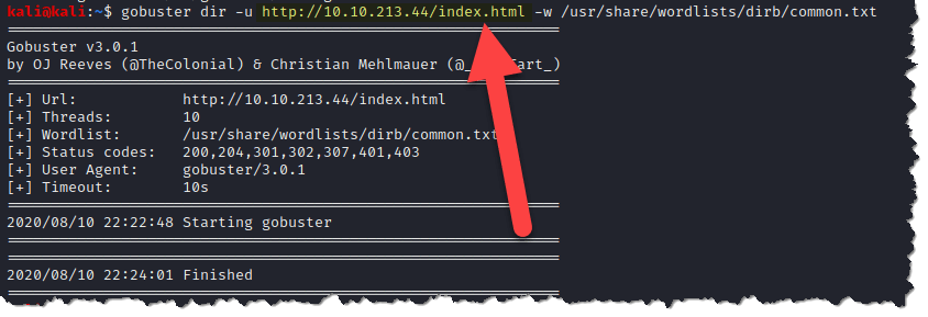 - -u – is the flag to tell gobuster that we are scanning a URL