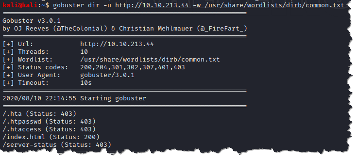 I was assigned an IP address of 10.10.213.44. If you are following this walk-through, please check your assigned IP address.
