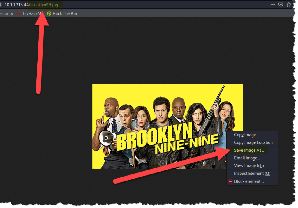 - The other gobuster scan came up empty, so let’s go back to the main page and download the Brooklyn Nine-Nine poster