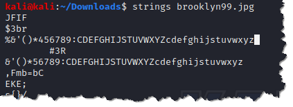 - Let’s try the basics of steganalysis by using strings. strings brooklyn99.jpg