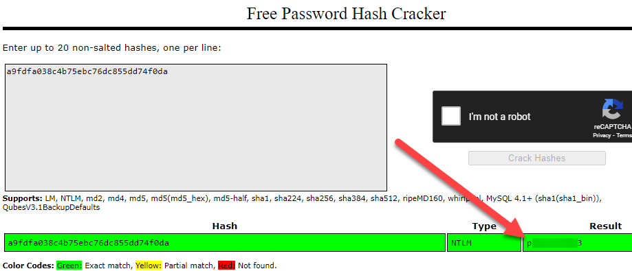 - Open CrackStation through your choice of browser and enter the NT hash that you retrieved.